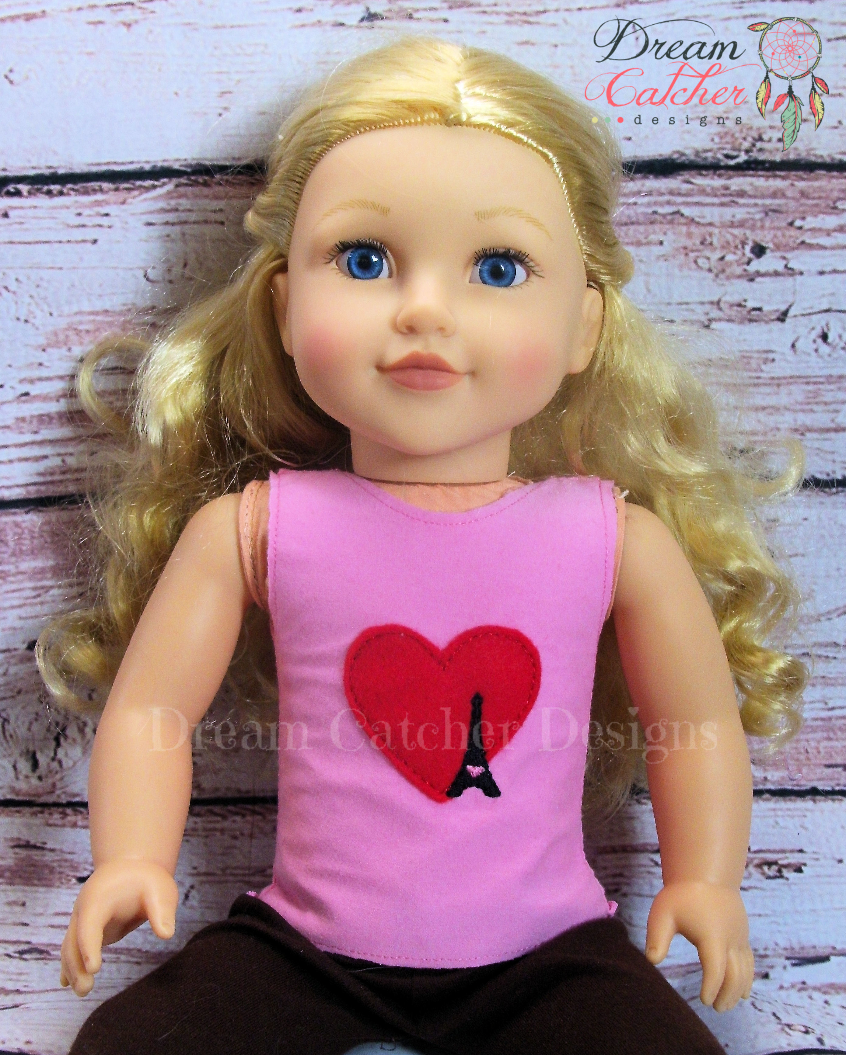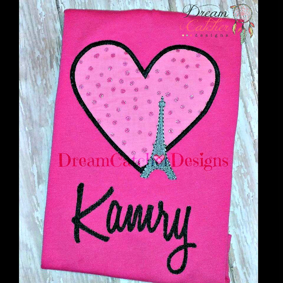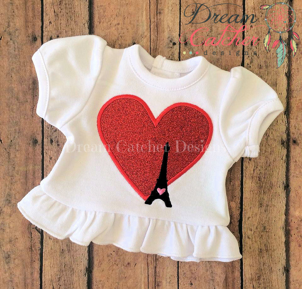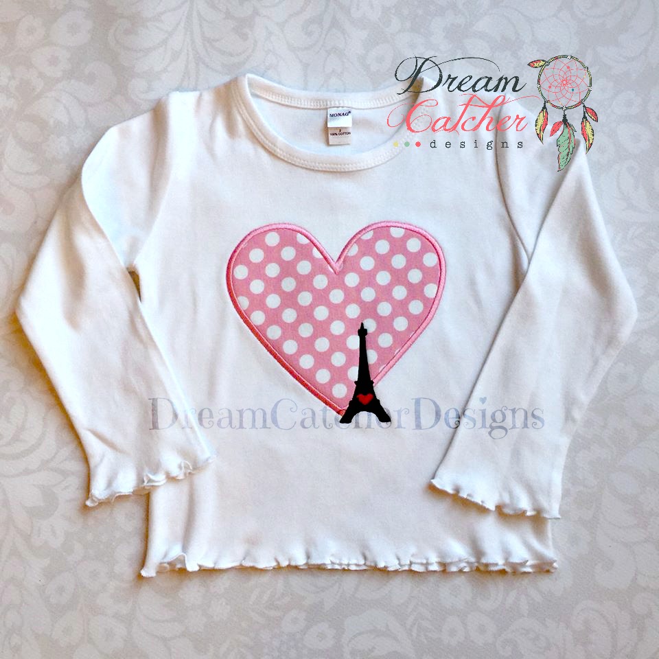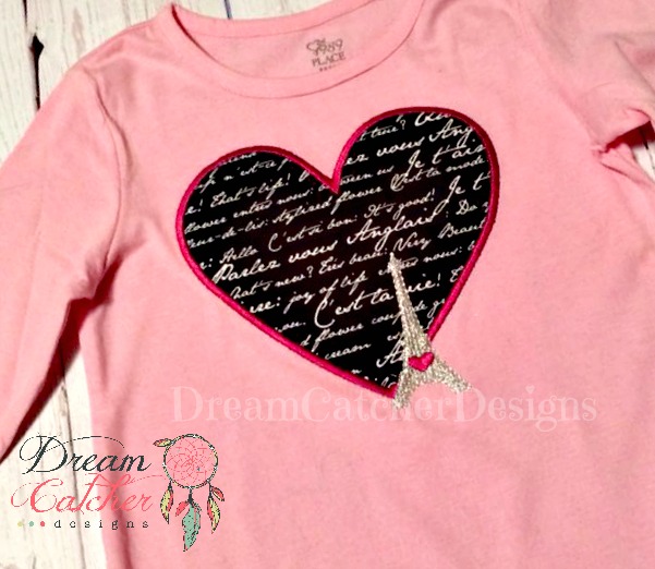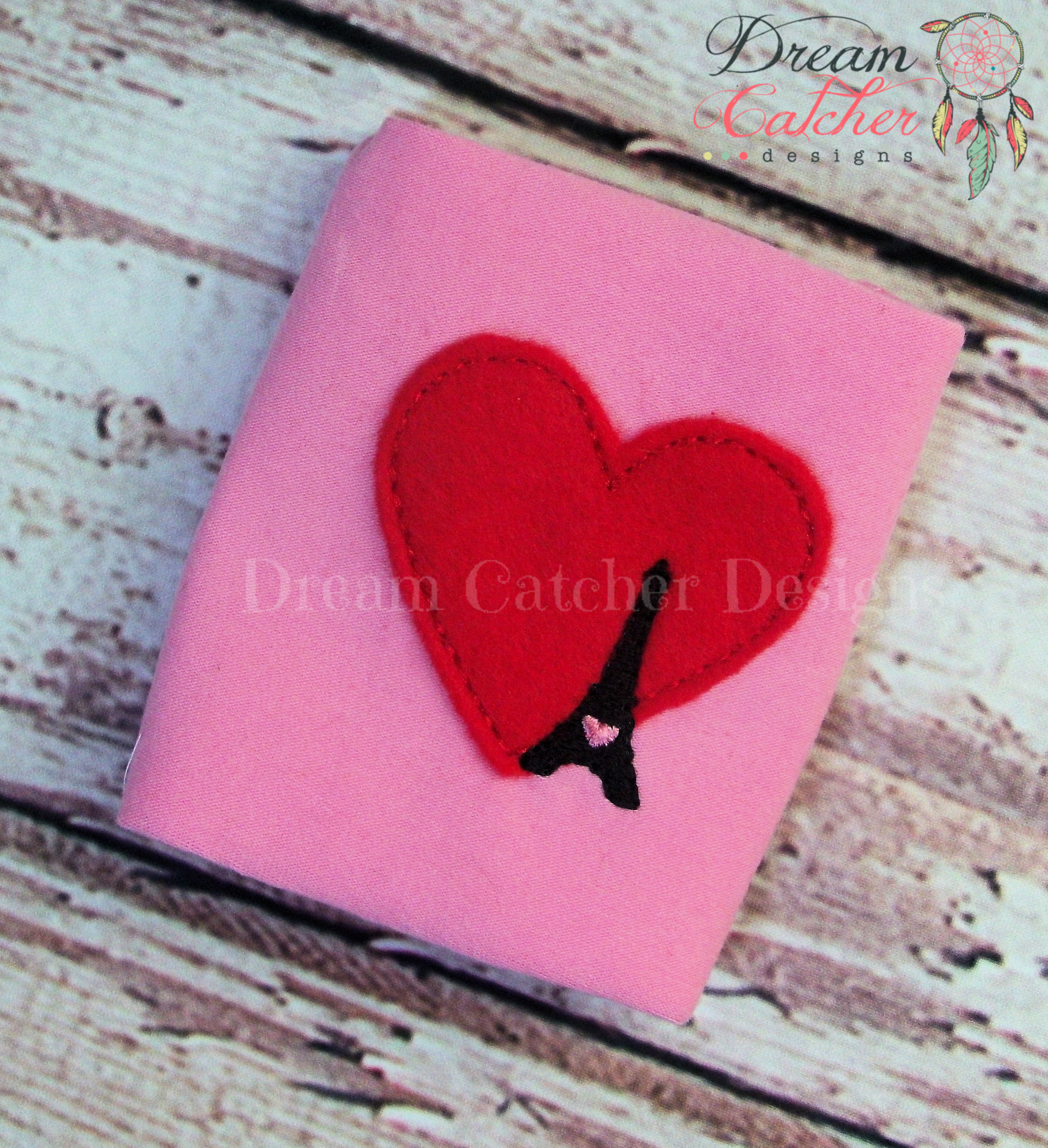 Heart and Eiffel Tower Valentine Applique Embroidery Design